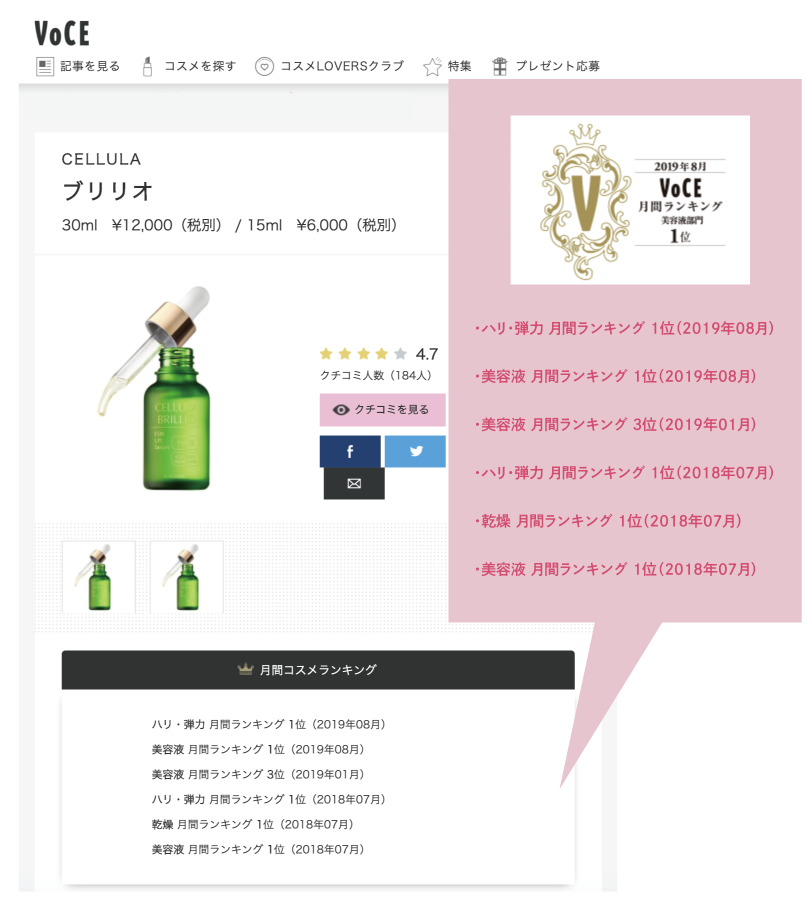 その噂はどんどん広まり美容の専門家が集まる「VOCE」でも月間ランキング第1位を獲得!