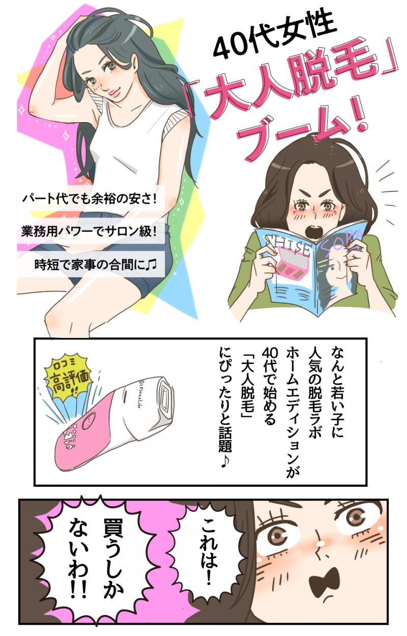 【40代で脱毛再ブーム】パート代で楽々支払い!20年使えるコスパ抜群脱毛器♥隙間時間に『大人脱毛』開始