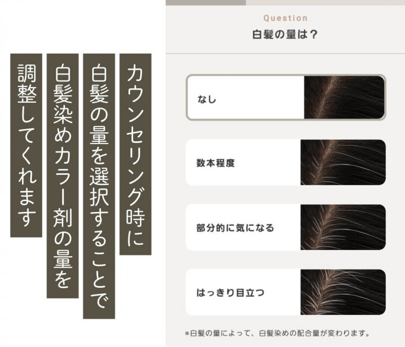 *1:Web上で髪の状態をカウンセリングし、ヘアカラー剤等を調合するサービスについて(2019年10月自社調べ)