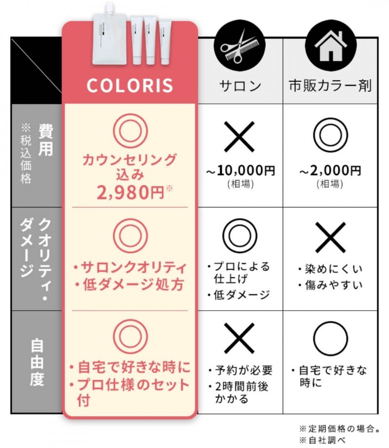カラリスは、美容室と同じように髪の状況に合わせて調合されるから、傷みにくいってことね♪
