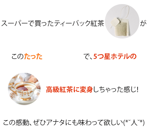 では、大好きな紅茶に入れて飲んでみます♡