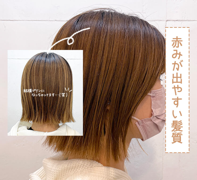 「現在の髪の暗さ・ブリーチなどの施術歴・ダメージ」を考慮したカラー剤で染めているから…