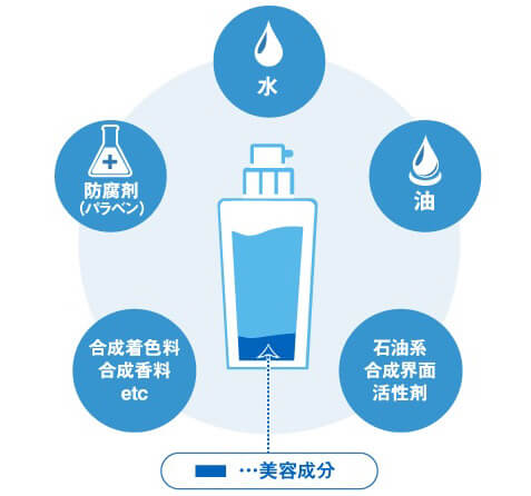 実は、従来のスキンケアは仕上がりを重視して余計なものが入ってる製品が多いんです。。。
