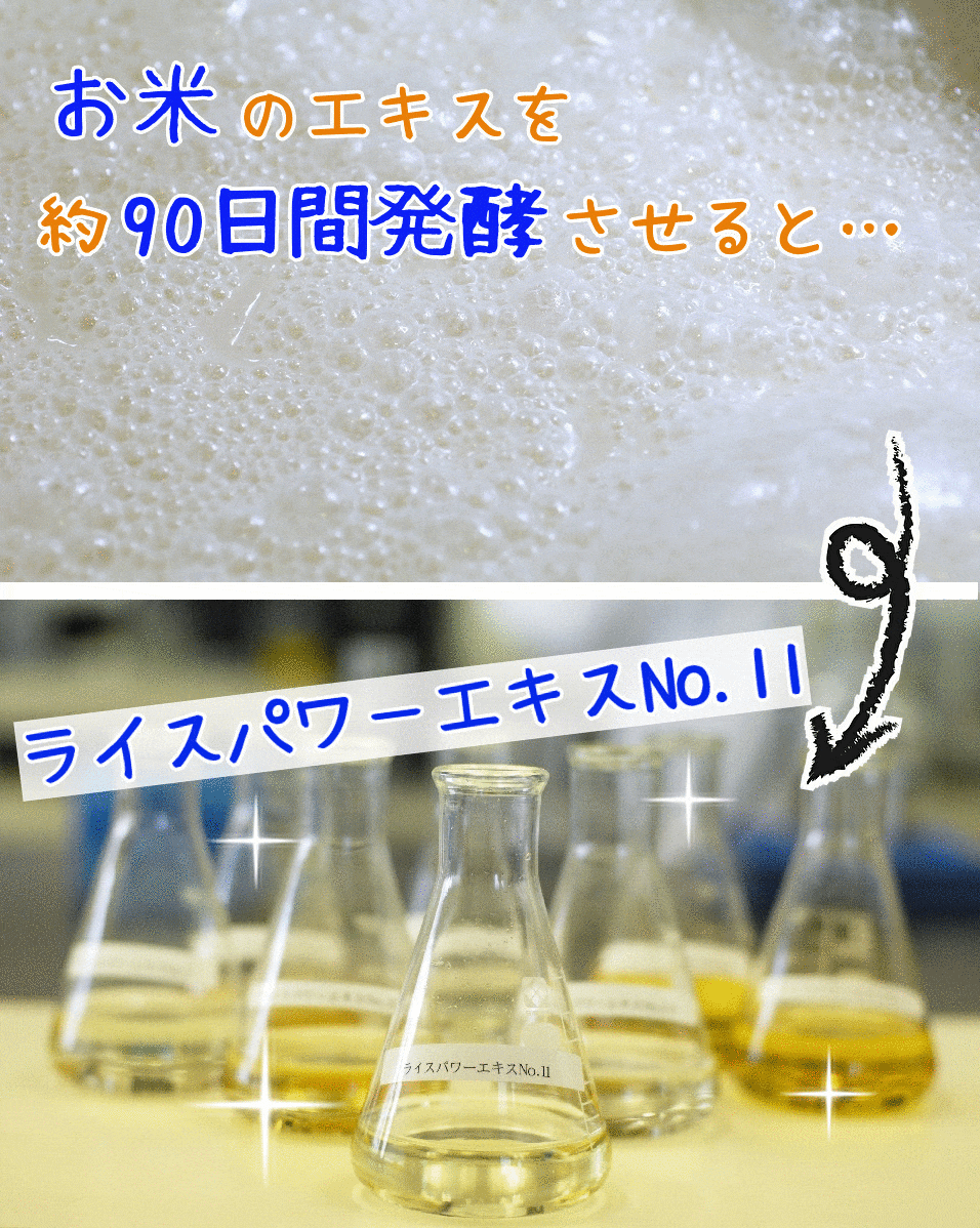 白米を原料に独自の技術でお米のエキスを抽出、そのエキスに麹菌や酵母、乳酸菌を加えて、90日間という長い時間をかけて発酵・熟成させたもの。