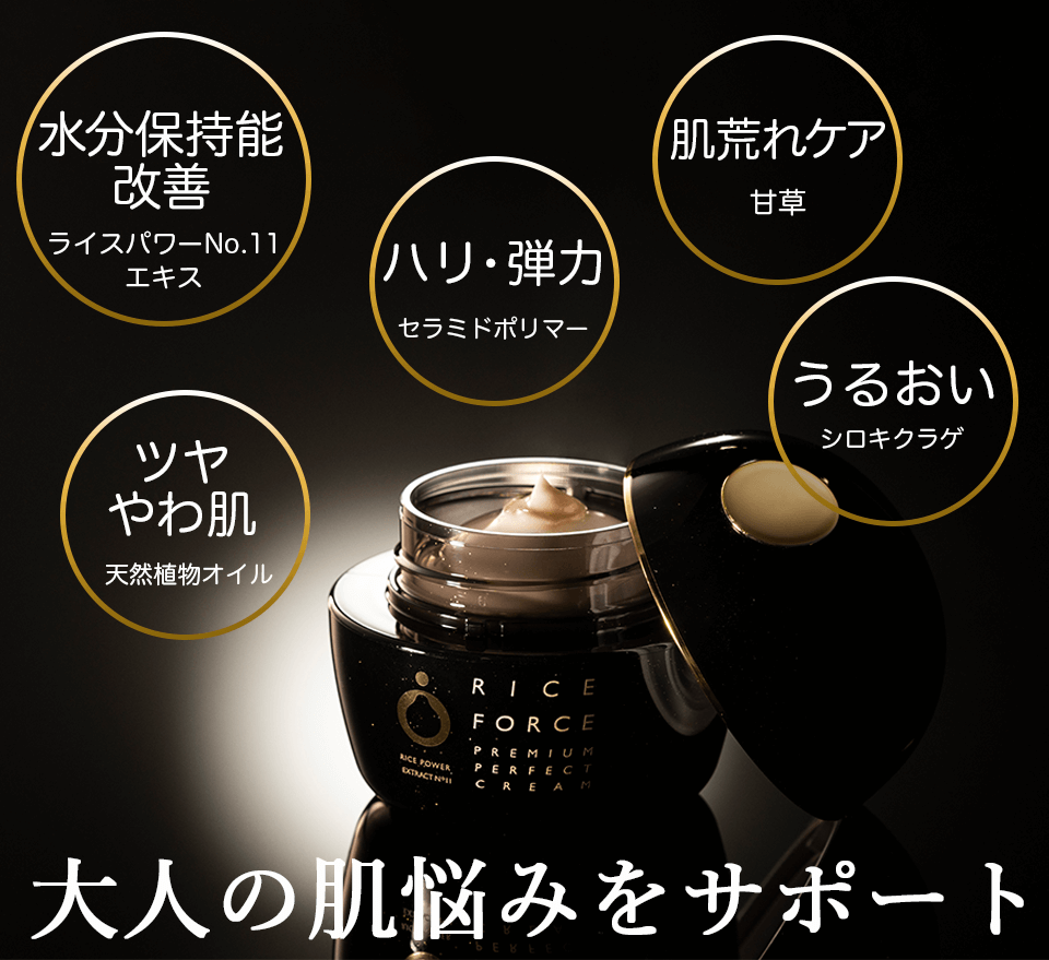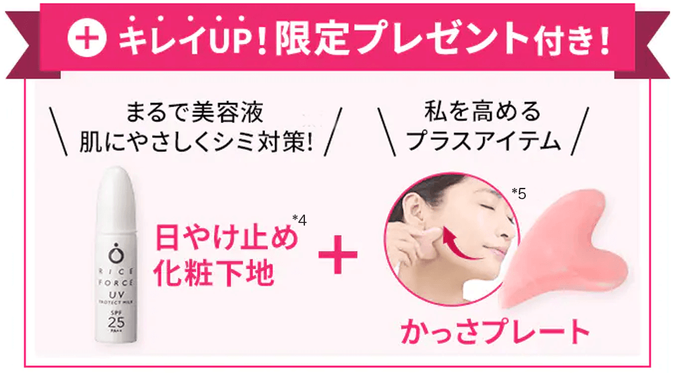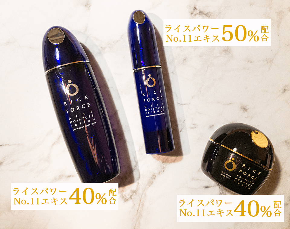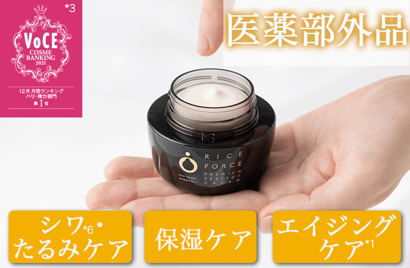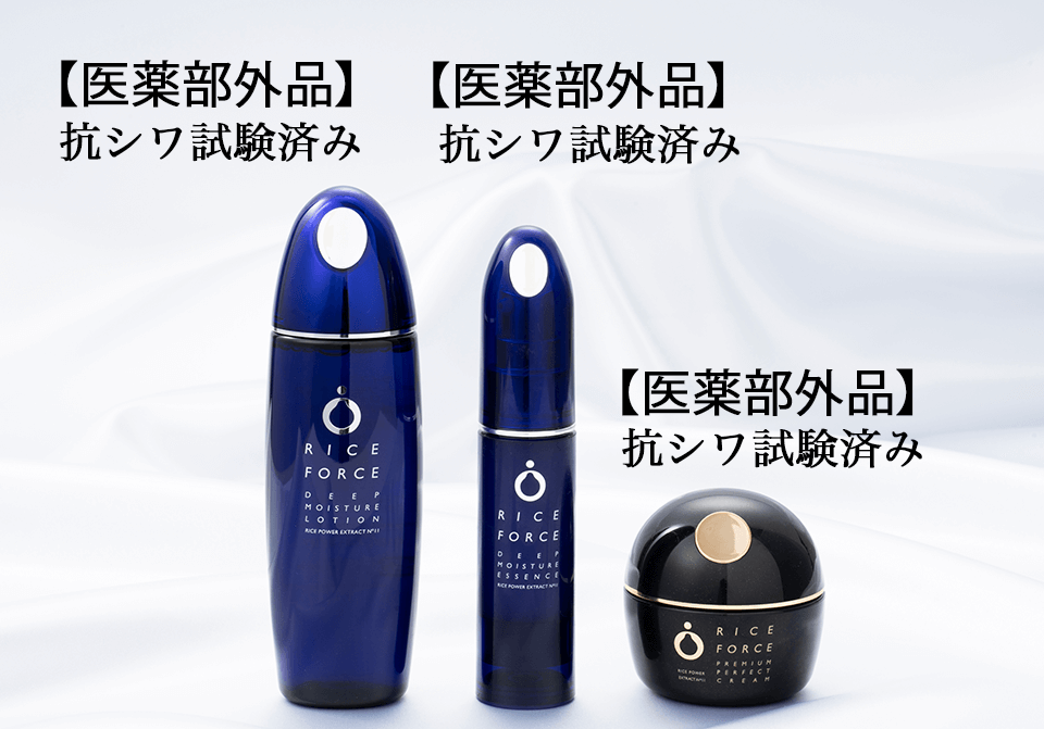 *1 年齢に応じたケア *2 ライスフォース商品内での比較 *3 2021年12月度 VOCE 月間ランキング ハリ・弾力部門 1位 *4 日焼けによるシミ・そばかすを防ぐ *5お手入れの方法として *6 乾燥による *7 角質層まで