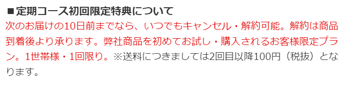 一応定期コースですが、いつでも解約できるから期待できなきゃ解約すればいいし、続ける場合も割引があってかなりお得です!