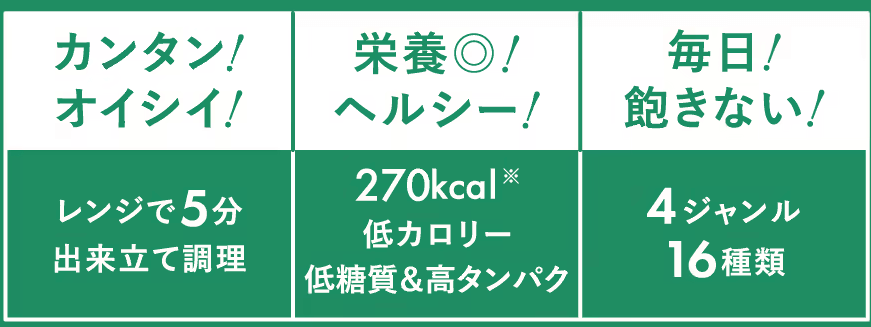 忙しい日の救世主🤝瞬間冷凍された野菜やお肉を素材そのまま届けてくれるから出来立てを味わえておいし~☺️平均カロリーは270kcal。和食・洋食・中華・エスニックの4ジャンル全16種類と豊富なメニューもうれしい🥄🍅🥦🧅