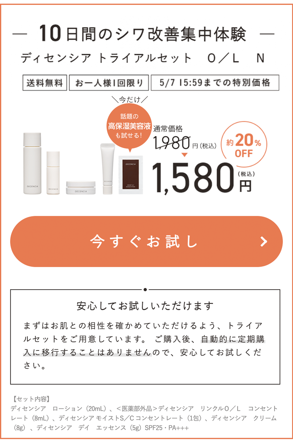 タイトル期限入れVerF2転換改修Part2【RN変更】悩み項目削除_8月改修【1580円オファー】オファー前商品説明挿入_リードオファーなし:FV変更_ディセンシアO/Lセット