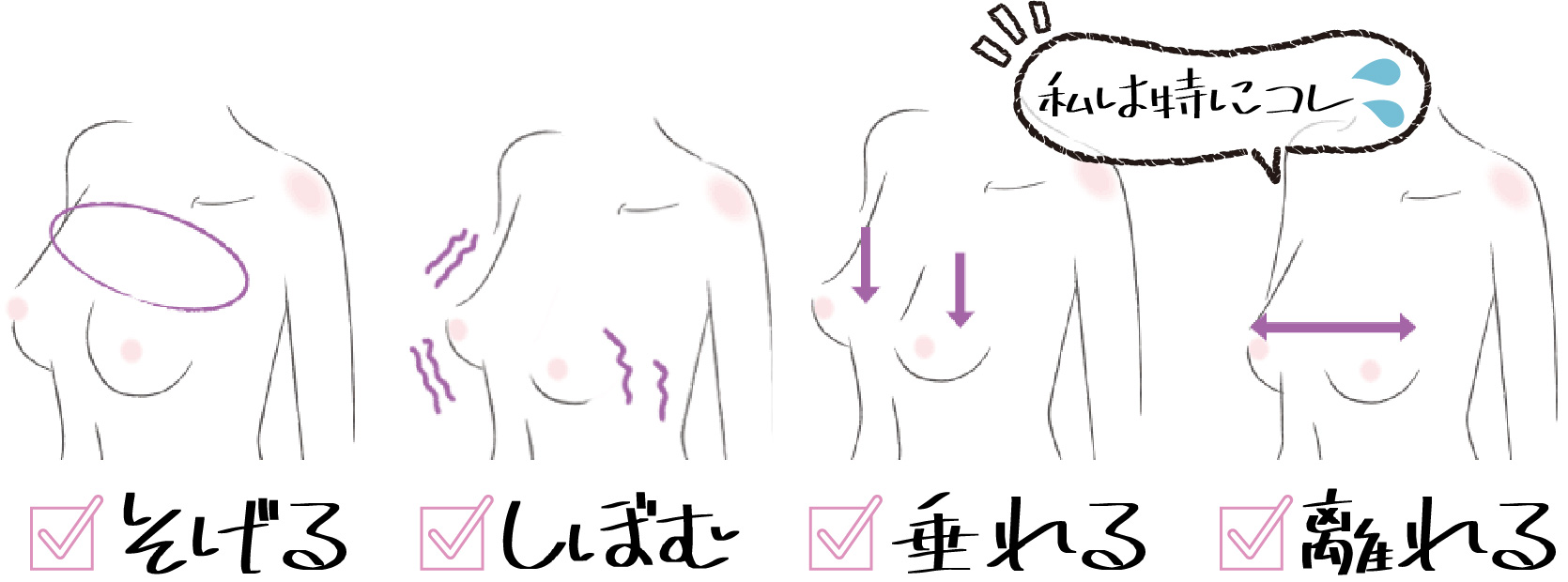 (特に、左右の胸の大きさや形が違う人は要注意!)