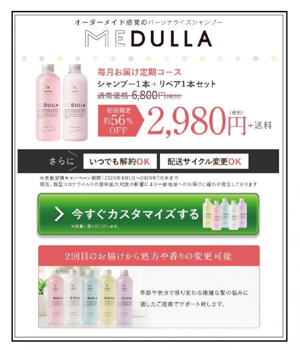 今、特別キャンペーン中みたいで、下記のページならシャンプー+リペアのセットが、初回約56%OFFの2,980円!