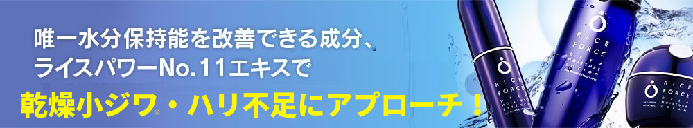 ライスフォースに含まれているライスパワーNo.11エキスは、医薬部外品の有効成分として肌の水分保持能改善の認可を受けているんです。