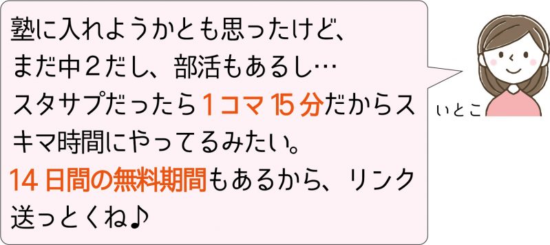塾や家庭教師もいいけど…休校中の現状はもちろん、値段や部活との兼ね合いなど、今後のことを考えても、スタサプはめちゃくちゃおすすめしたいです♪